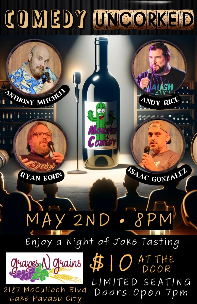 Sign up to perform at Open Mic Night with Mohave Comedy! Come down and prove your stuff with the best comedians Mohave County has to offer…